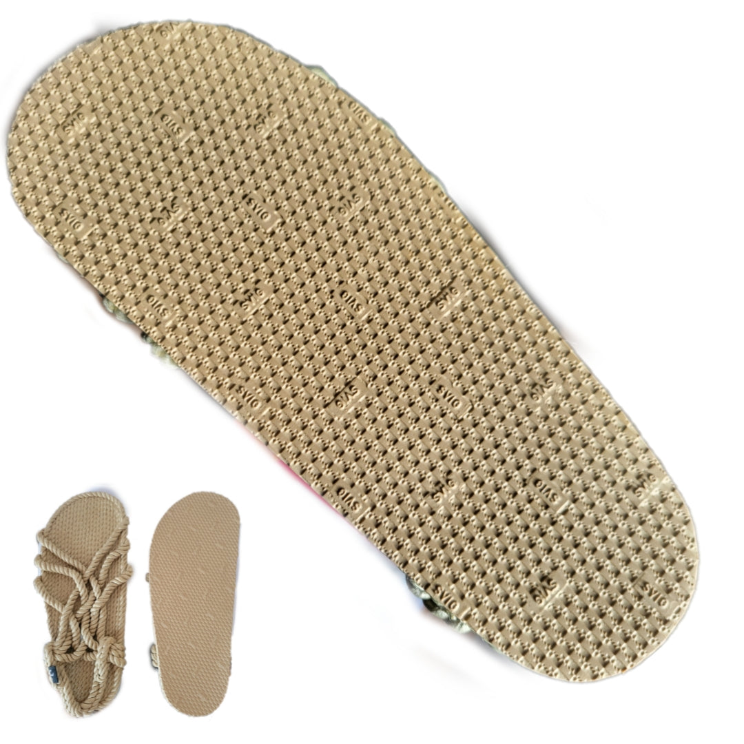 ¡Nuestra sandalia JC tradicional con suela Vibram! Añade un poco más de suela a tu vida, suave, ligera, resistente, color camel, unisex, se puede lavar y mojar. Antideslizante y que no deja marcas, ¡ideal para paseo en bici, el río, la montaña o la playa! 90% de material reciclado del océano, ecosostenible.